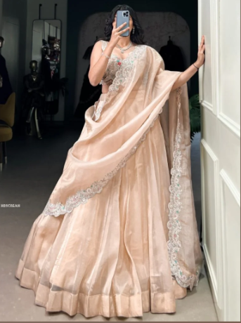 Step into timeless sophistication with this Beautiful Cream Thread Embroidered Designer Lehenga from EduStyle, designed to radiate grace and modern charm.