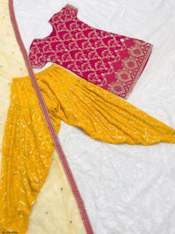 Designer Pink Embroidered Top with Mustard Patiala and Dupatta