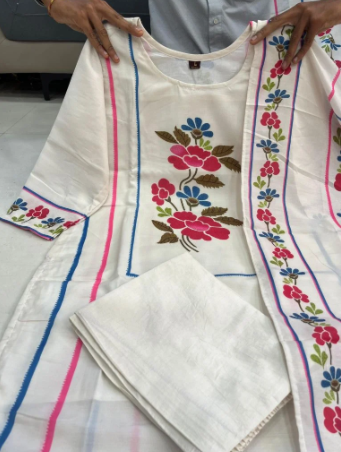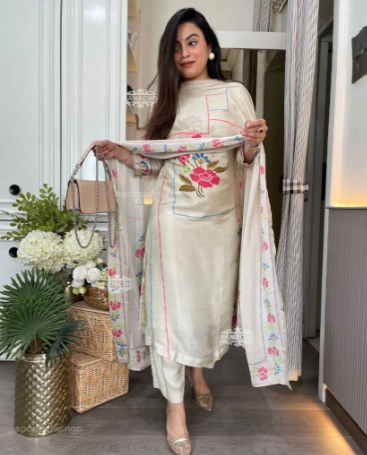 The set comes complete with a coordinated dupatta, adding a touch of refinement to the overall look. Available in sizes M (38) to XXL (44), this 3-piece ensemble is ideal for casual outings, festive gatherings, or elegant daytime events. Lightweight, breathable, and beautifully detailed, it’s a must-have addition to your ethnic wardrobe for a classy and comfortable style statement.