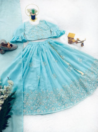 Designed for ages 2 to 15 years, this outfit ensures comfort, style, and elegance in every twirl. It’s a delightful addition to your little girl’s festive wardrobe — combining tradition with a modern flair.