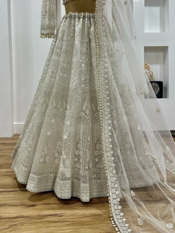 Grace your special occasions with this Premium Designer Sequin Embroidered Net Lehenga Choli, a masterpiece crafted for modern elegance. Made from luxurious soft net fabric, the lehenga features exquisite sequins, dori, and thread embroidery that radiates festive charm. The 3.25+ meter flair with attached can-can ensures a voluminous and graceful drape, perfect for any celebration. The unstitch net blouse is richly adorned with matching sequins and thread detailing, allowing you to customize your perfect fit. Completing the ensemble, the net dupatta is beautifully embellished with sequin, dori work, and a pearl border, adding a royal touch. Ideal for weddings, receptions, and festive functions, this lehenga blends traditional craftsmanship with contemporary style.
